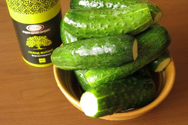 На такий оригінальний рецепт її надихнула інформація про те, що для мочених яблук використовують солод, а для закваски огірків - житні сухарі. Ось Катерина і вирішила об'єднати цих два рецепта.