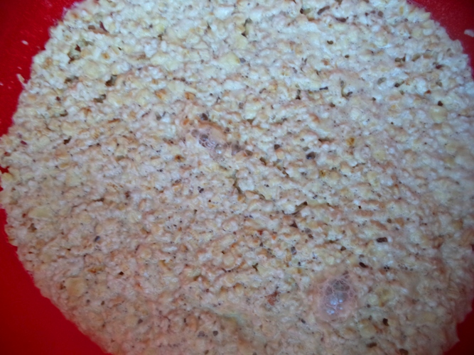 Прикрити миску кришкою і відставити на 30 хвилин. За чей час дріжджі почнуть бродити, а висівки набухнуть.