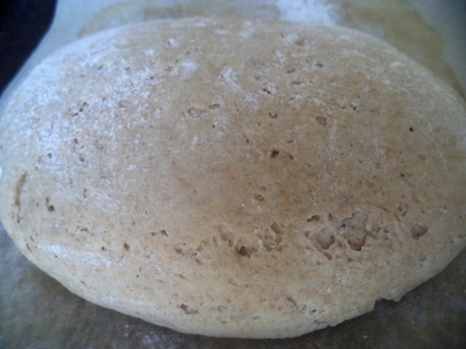Викладаємо буханку на деко, прикриваємо рушником і розстоюємо в теплому місці 20 хвилин.