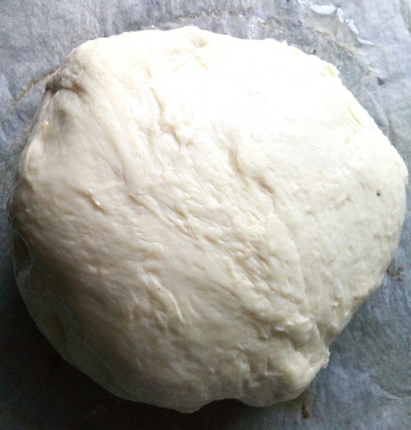 Готове тісто я виймаю і перекладаю на деко з пергаментом, змазаним олією.