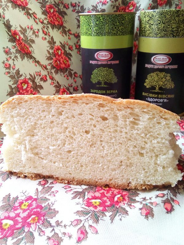 Такий хліб я печу вже багато років. Але останнім часом вирішила зробити його більш корисним. Додала в нього корисні рослинні добавки - це зародок зерна і висівки вівсяні.