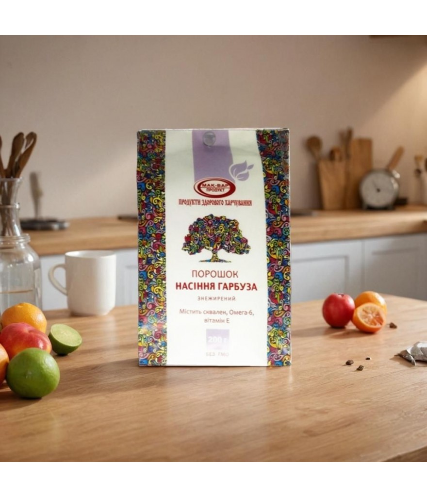 Теги: гарбузовий шрот, насіння гарбуза, знежирений, білок, 200 г