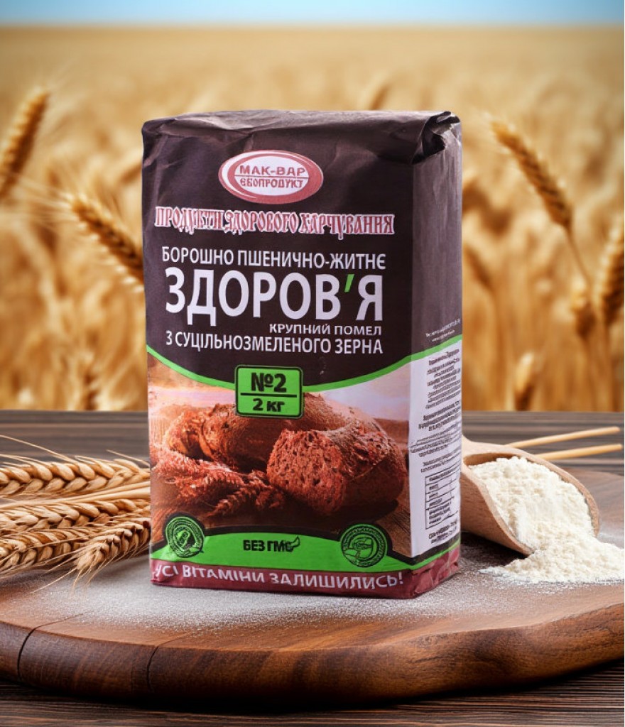 Теги: Борошно "ЗДОРОВ'Я" №2 суміш пшенично-житня суцільнозернова (2 кг), Здорове Харчування, натуральний продукт