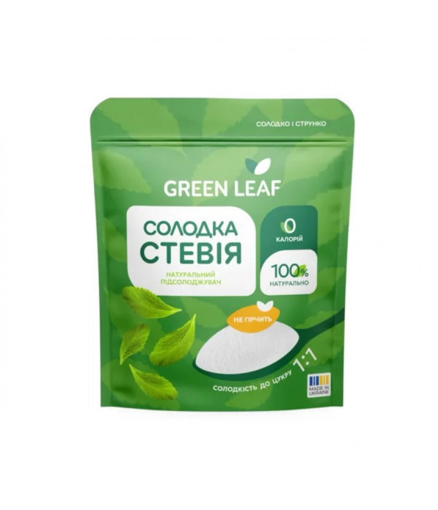 Натуральний підсолоджувач GREEN LEAF, що вже так полюбився споживачам. Він не містить калорій, тому не зашкодить Вашій фігурі. Солодка Стевія для тих, хто піклується про своє здоров’я. Підходить для людей з діабетом, безпечна для дітей і вагітних.