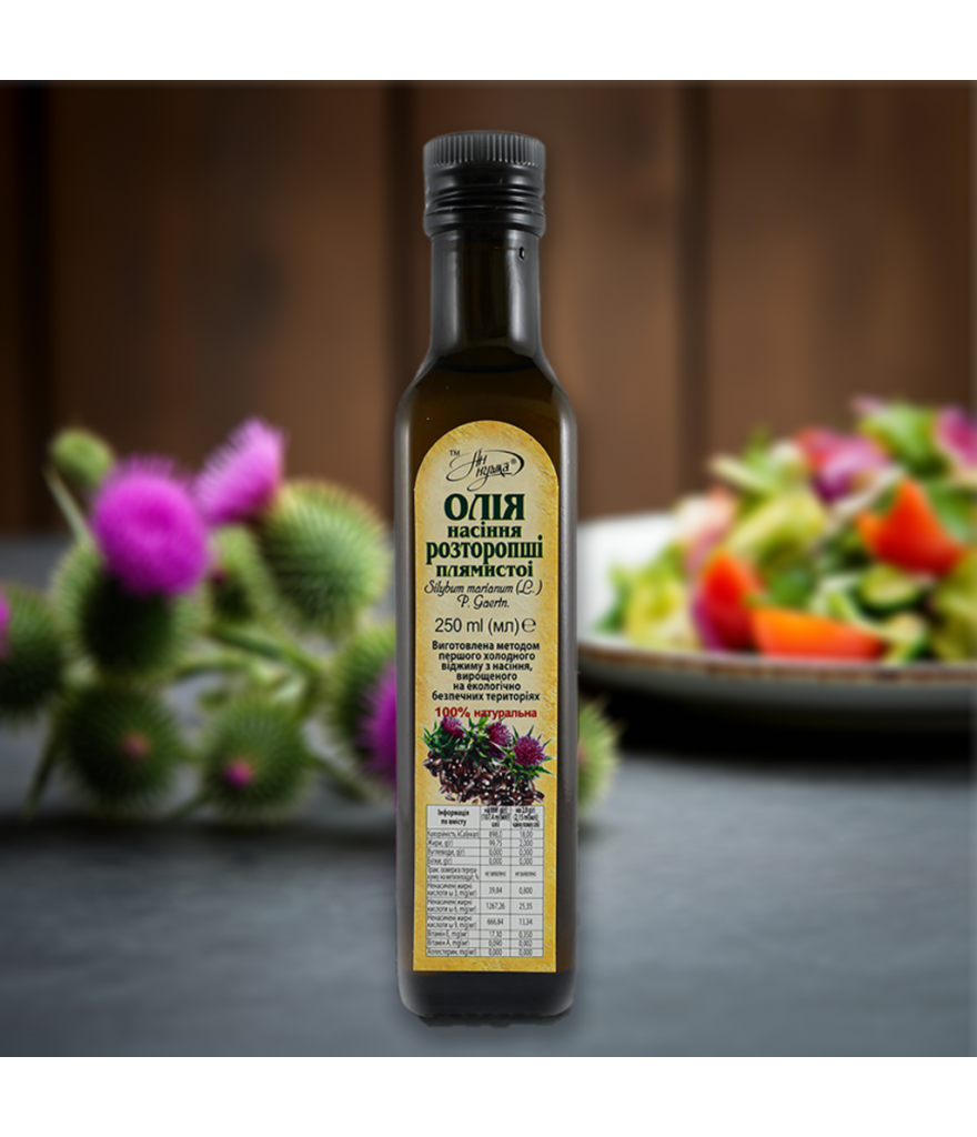 Олія насіння розторопші плямистої, 250 мл, скло темного кольору, корок металевий з дозатором