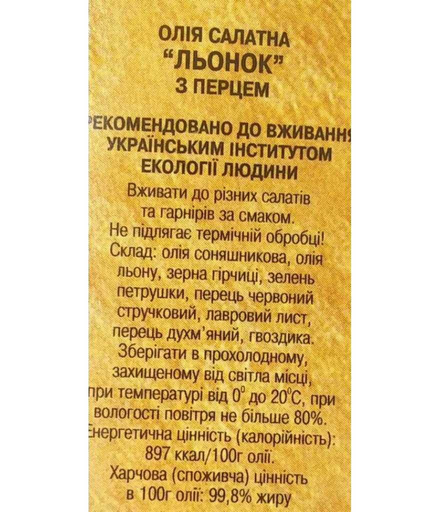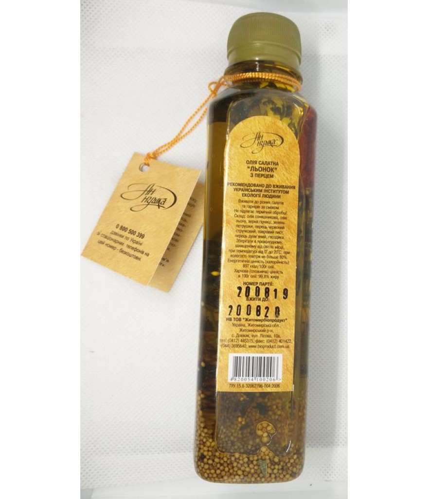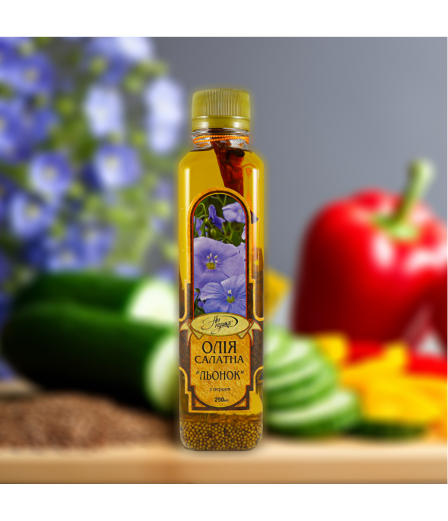 Теги: Олія салатна "Льонок" з перцем "Ан-нушка", 250 мл, Здорове Харчування, натуральний продукт