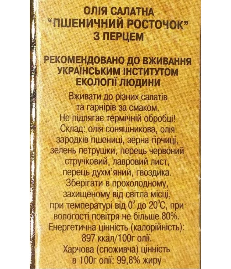 Теги: Олія салатна "Пшеничний росточок" з перцем "Ан-нушка", 250 мл, Здорове Харчування, натуральний продукт
