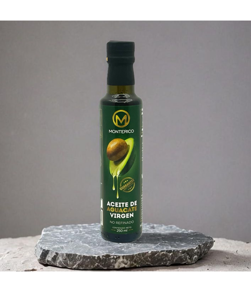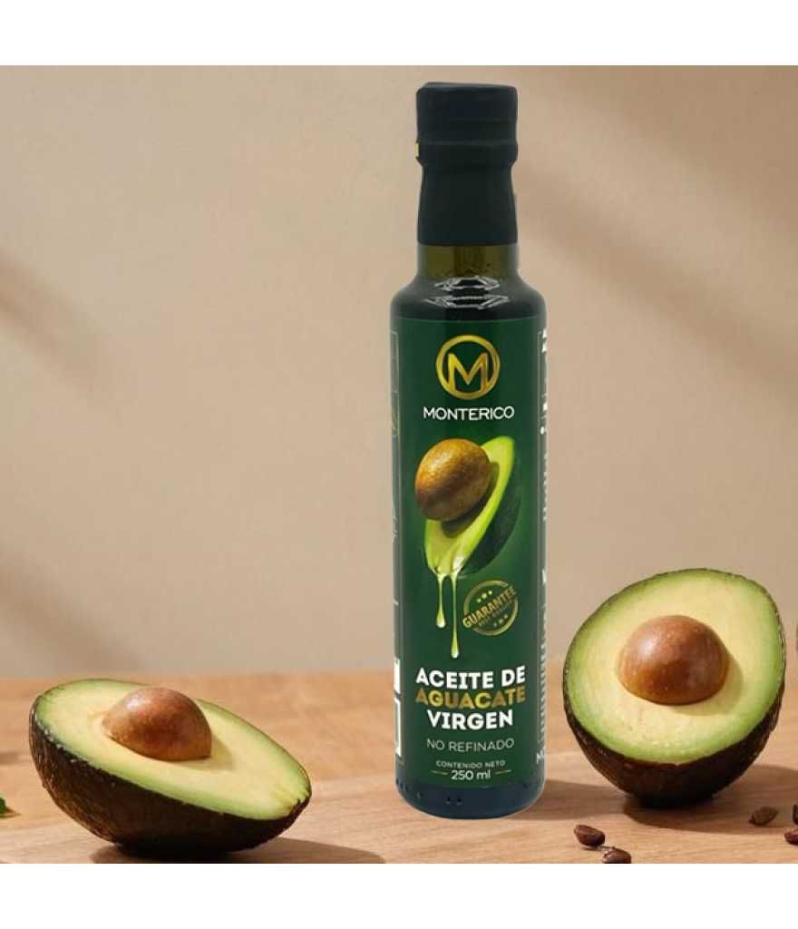 Олія авокадо Extra Virgen Monterico виготовлена з добірних плодів авокадо методом холодного віджиму без рафінації. Вона зберігає натуральний смарагдовий колір, м’який аромат і приємний горіховий присмак.