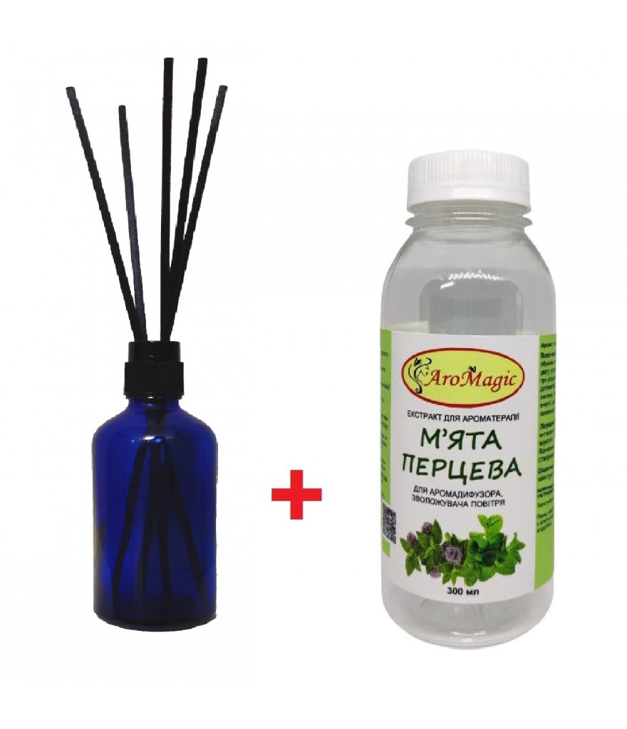 - Модель: aromadifuzor-sinj-z-palichkami-ta-ekstraktom-Mint-300ml