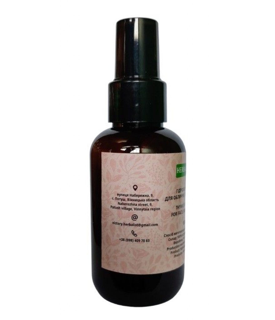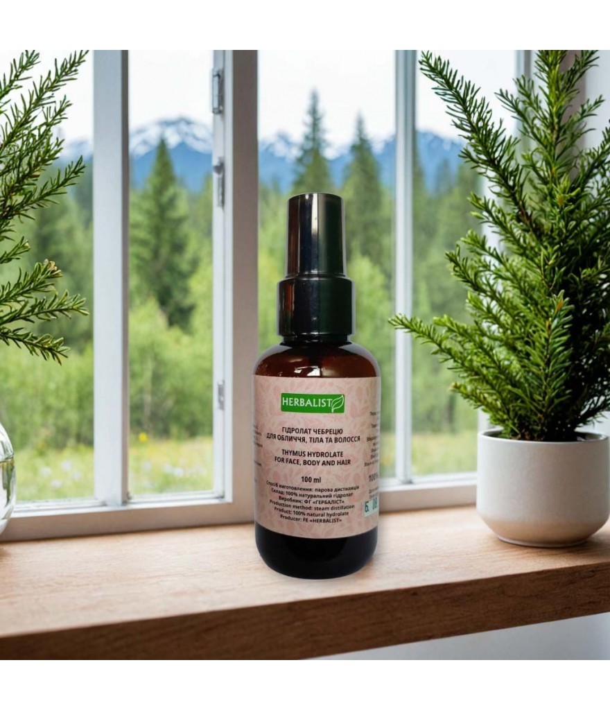 Гідролат Чебрецю для обличчя, тіла та волосся, розприскувач 100 мл