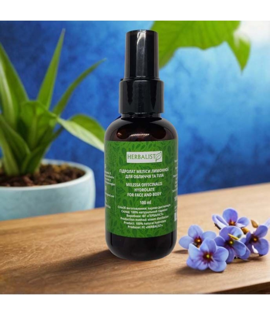 Гідролат Меліси Лимонної (Melissa officinalis) - відрізняється універсальністю і підходить для догляду за шкірою будь-якого типу. Дуже корисний для зрілої та сухої подразненої шкіри та шкіри з дефектами.