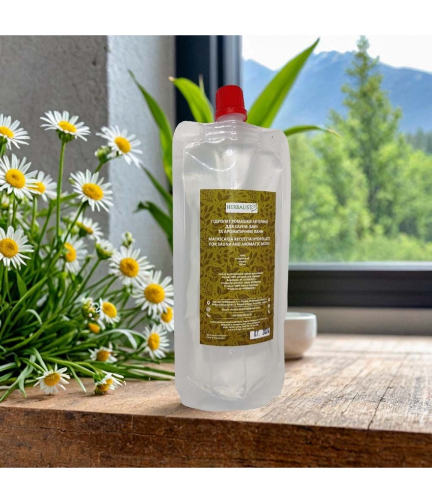 Гідролат ромашки аптечної (Matricaria recutita) – природний тонік у догляді за шкірою. Один з найпопулярніших гідролатів і універсальний за своїми властивостями. Підійде для шкіри будь-якого типу. За свої благотворні дії на шкіру, його використовують при купанні немовлят, ним обробляють запрілості, промивають очі при коньюктивіті та синдромі «сухого ока».
